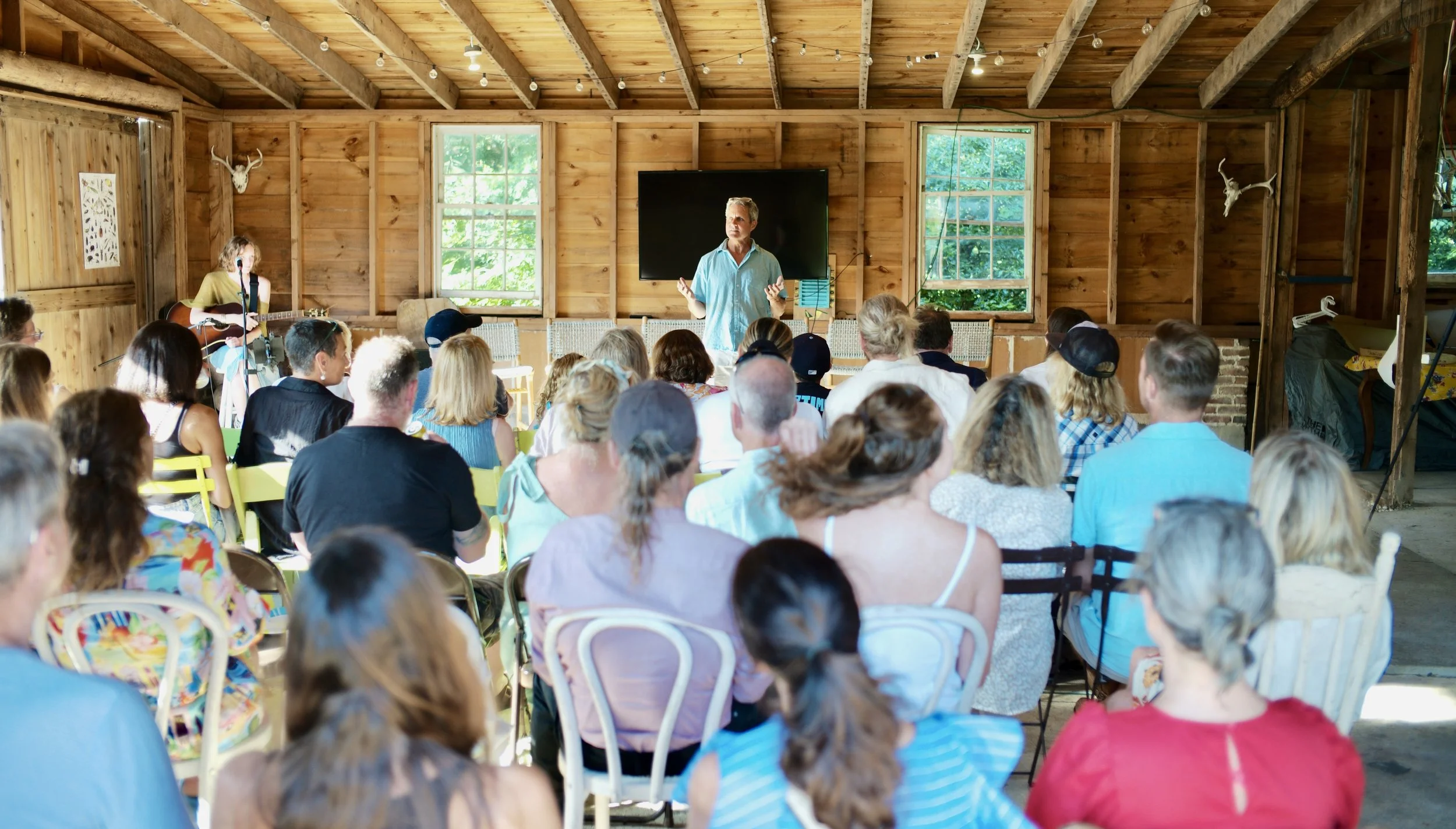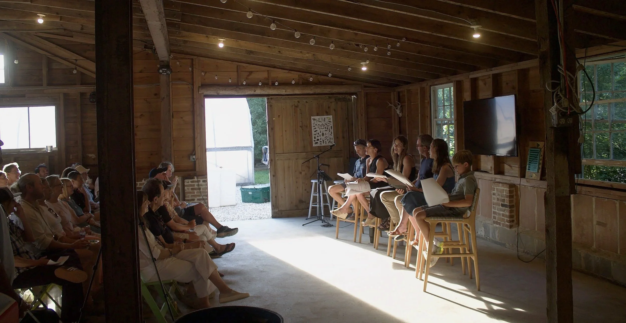 We develop our work to premiere locally at various non-traditional venues — barns, churches, fields, vineyards, village greens, communal spaces and private homes. Much of the work is location-specific, written or adapted for these sites.